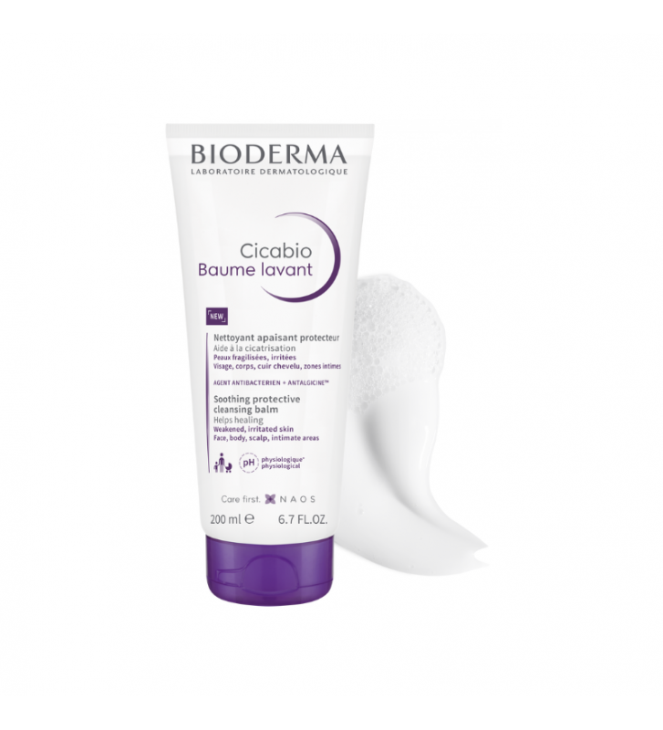 Bioderma Cicabio Baume Lavant é perfeito para toda a família (exceto bebés prematuros), restaurando a suavidade e proteção da pele durante a limpeza diária.