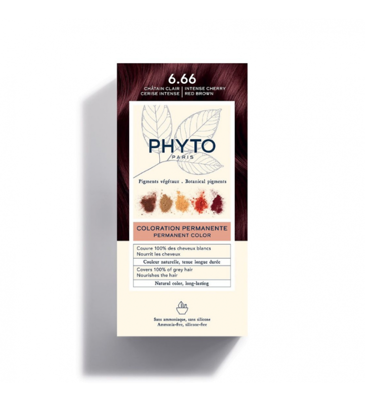Phyto Kit Coloração Permamente 6.66 Castanho Claro Cereja Intenso | Tinta para Cabelo Sem Amoníaco