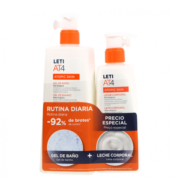 LETIAT4 Pack Gel de Banho 500 ml + Leite Corporal 250 ml oferece uma solução completa para a higiene e hidratação diária da pele sensível. O gel de banho limpa suavemente, respeitando o equilíbrio da pele, enquanto o leite corporal hidrata e acalma, proporcionando uma sensação de conforto duradouro.