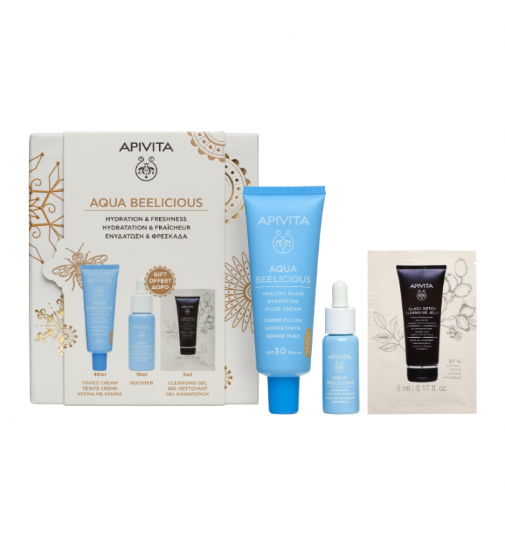 Apivita Coffret Natal Aqua Beelicous Fluido Com Cor SPF30 | Oferta Booster + Amostra Black Detox