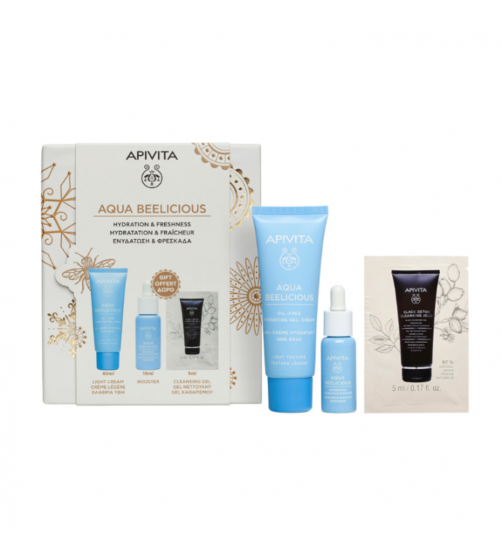 Apivita Coffret Natal Aqua Beelicous Gel Creme Oil-free | Oferta Booster + Amostra Black Detox