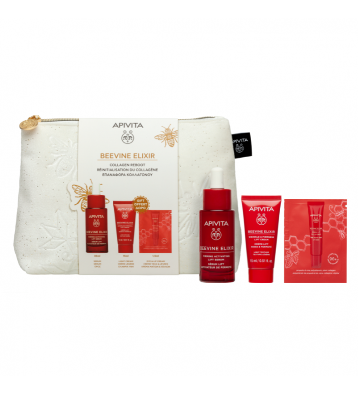 Apivita Coffret Natal Beevine Elixir Sérum | Oferta Creme Ligeiro + Contorno Olhos + Bolsa