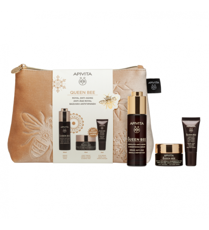 Apivita Coffret Natal Queen Bee Sérum | Oferta Creme Ligeiro + Creme Olhos + Bolsa