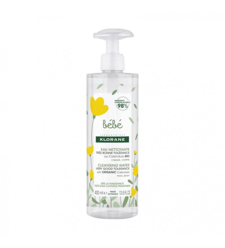 Klorane Água de Limpeza Bebé Calêndula Bio 400ml | Desde o Nascimento | Sem Enxaguar | Frasco com Bomba