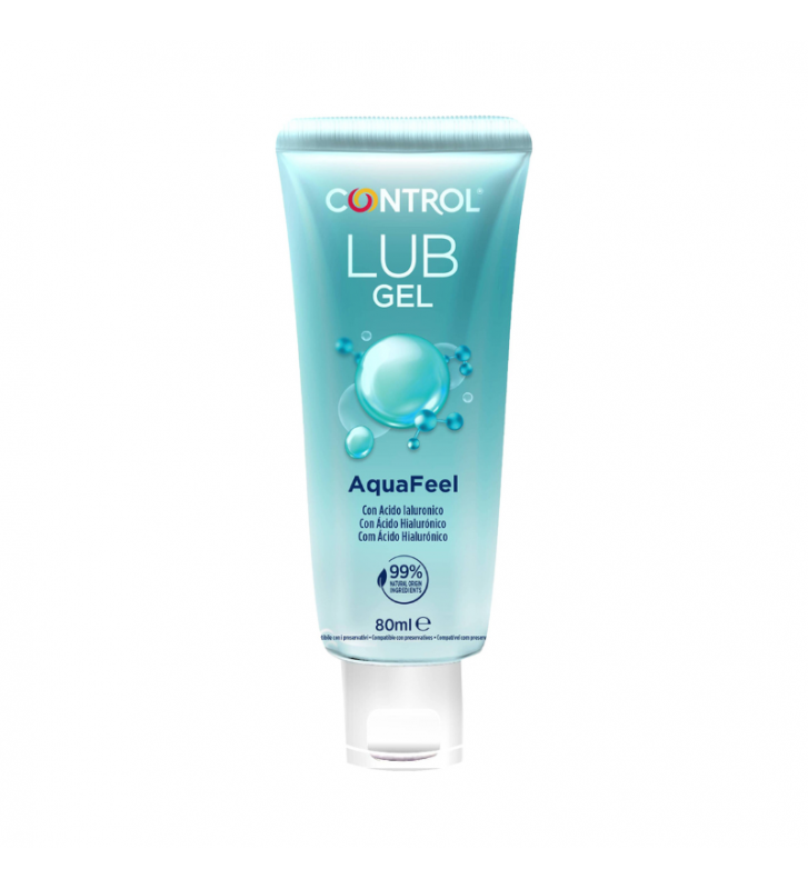 Control AquaFeel Gel Lubrificante Íntimo 80ml | Com Ácido Hialurónico | 99% Natural | Compatível com Preservativos