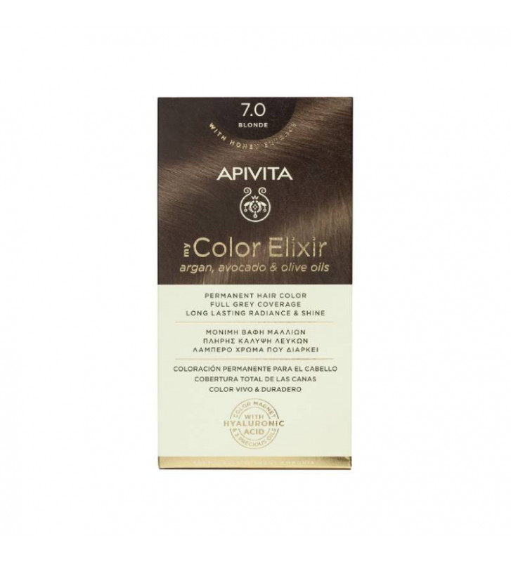 Apivita My Color Elixir é um cuidado coloração que proporciona ao cabelo uma cor vibrante e duradoura. Enriquecido o ativo inovador Color Magnet (estabilizador e fixador de cor), 3 óleos preciosos (argão, abacate e azeitona), para uma cobertura total, com uma cor vibrante e duradoura. Com condicionador, rico em ácido hialurónico e extrato de mel, para uma ação hidratante, protetora e iluminadora. Sem amoníaco nem PPD.