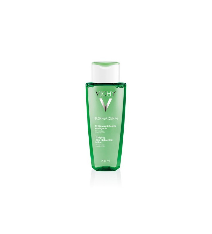 TÓNICO ASTRINGENTE PURIFICANTE da linha Vichy NORMADERM. Uma loção desenvolvida para mulheres com pele sensível, para combater imperfeições, poros dilatados e excesso de gordura. Esta loção tónica tem ativos de efeito peeling que desobstruem e fecham os poros. Também mantém a pele emaranhada e elimina a aparência de brilhos sem graça. Como resultado, a textura da pele é ajustada, os poros parecem mais fechados e não haverá sinais de brilho da primeira aplicação! Esta loção sem enxaguamento respeita a pele ao máximo e pode ser usada até mesmo por utilizadores com pele mais sensível.