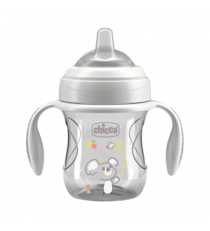 Com pegas removíveis e fácil de pegar o Copo de Transição Cinza Chicco 4M+ é ideal para bebés a partir dos 4 meses, para a transição gradual do seio ou biberão para o primeiro copo.
