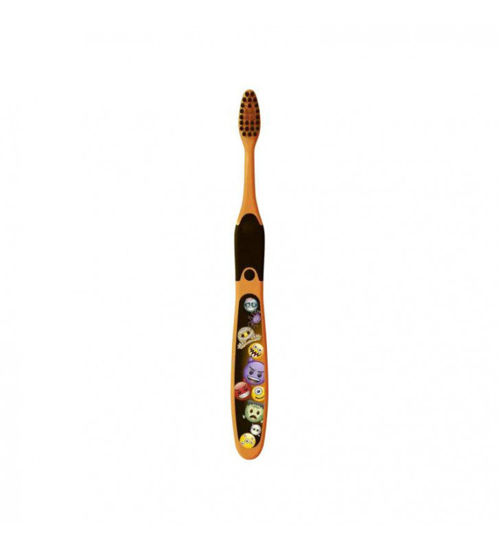 Elgydium Junior Escova de Dentes Emoji Monster 7-12A é uma escova de dentes divertida para tornar a escovagem motivadora e engraçada com os monstros emoji do Dia das Bruxas, para crianças dos 7 aos 12 anos.