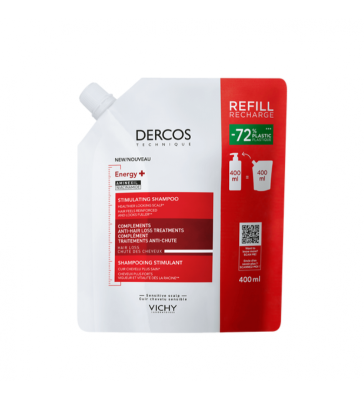 Dercos Estimulante Champô Energy+ Refill da Vichy é o cuidado ideal para complementar os tratamentos antiqueda e revitalizar o couro cabeludo.