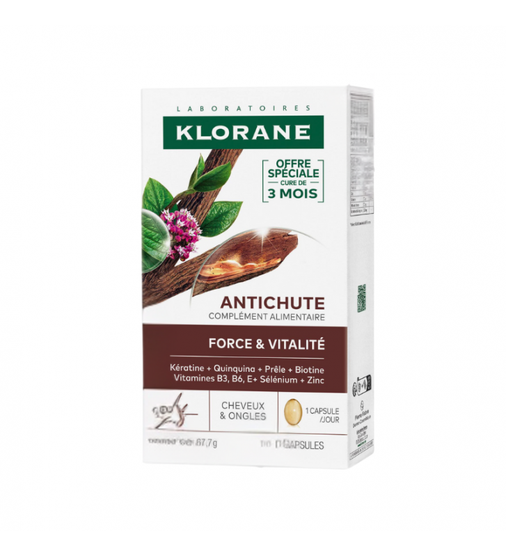 Klorane Capilar Antiqueda Suplemento | 90 Cápsulas | Força para Cabelo e Unhas