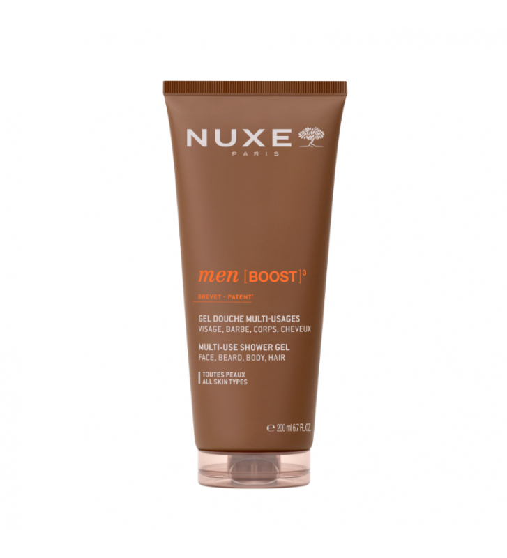 Nuxe Men Boost Gel de Duche Multiusos 200ml | Gel de Duche 4 em 1 p/ Corpo, Rosto, Cabelo & Barba