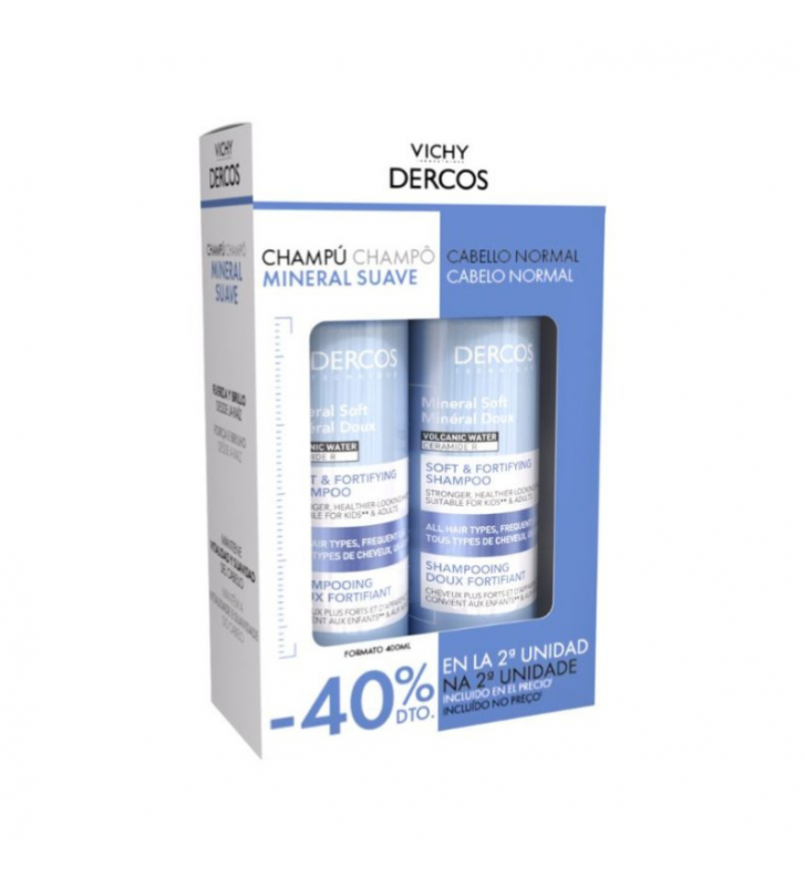 Dercos Pack Duo Mineral Soft Champô Suave 2x400ml | Uso Diário | Fortificante