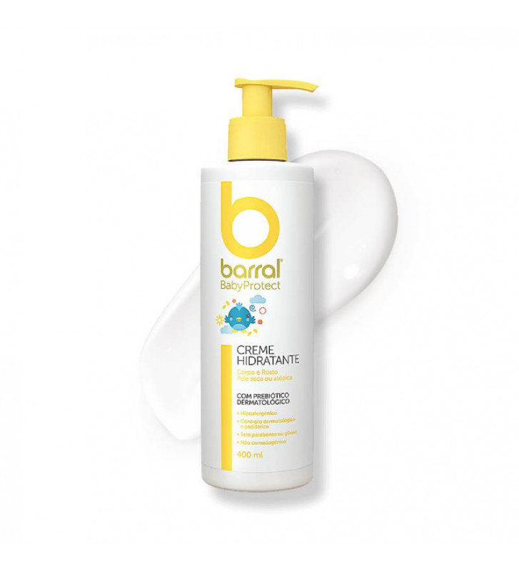 Barral BabyProtect Creme Hidratante 400ml ajuda a reequilibrar a flora cutânea e a proteger a barreira da pele das agressões do meio ambiente.
