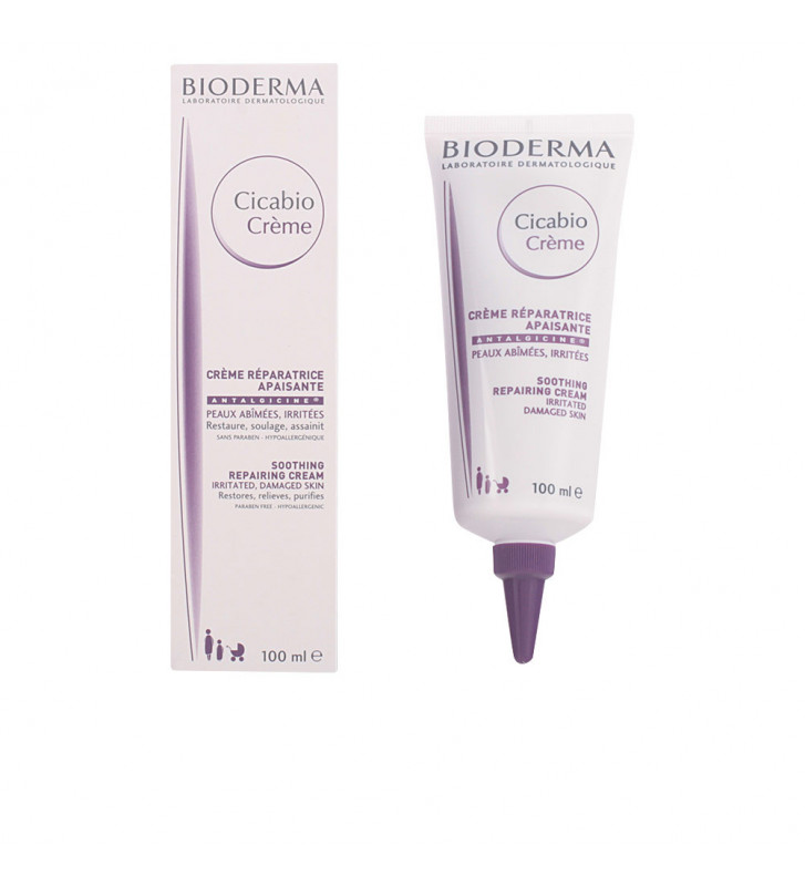 Cosméticos Bioderma. CICABIO Crème Réparatrice Apaisante. Tratamento para a pele danificada e / ou irritada após pequenas cirurgias ou atos cosméticos, como cascas, lasers, depilação permanente ... O produto restaura a derme, aliviando a dor e reduzindo a coceira, graças à sua patente Antalgicine. Além disso, possui um efeito curativo e é adequado para todos os tipos de pele.